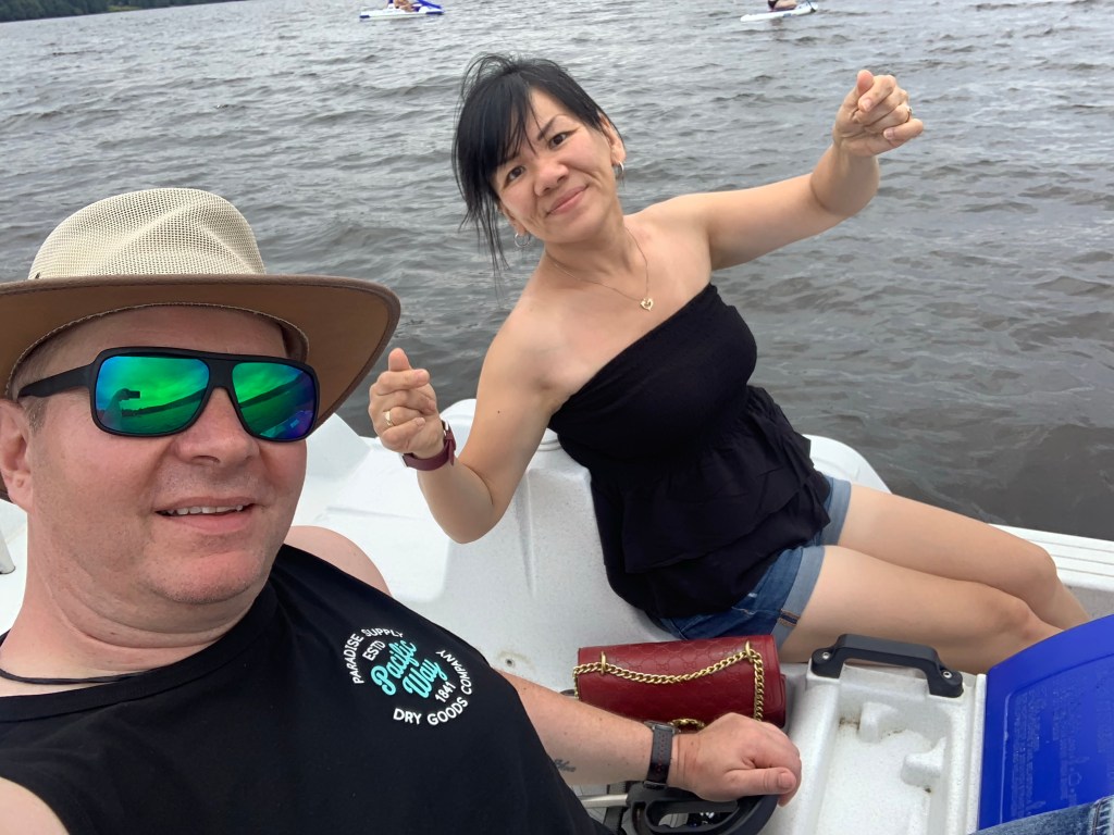 Heute haben wir uns erneut für eine Runde Tretboot entschieden, um ein bisschen Sport zu treiben. Die Windböen und kleinen Wellen sorgten für zusätzlichen Nervenkitzel und brachten uns zum Lachen. Es ist einfach herrlich, wie viel Spaß uns das bereitet.