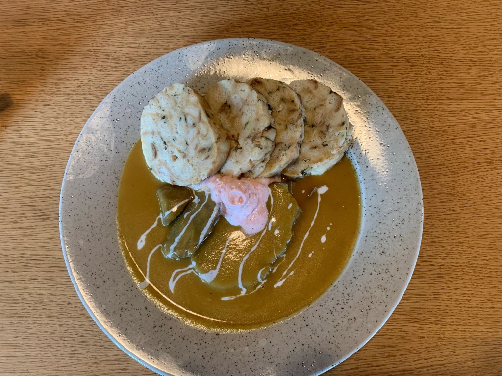 Wir sind wieder in Lipno nad Vltavou angekommen und hatten Lust auf ein gutes Restaurant. In der Stodola gibt es traditionelle tschechische Gerichte, natürlich auch mit köstlichen böhmischen Knödeln. Meine Frau entschied sich für Reis mit zartem Putenfleisch, während ich mich für böhmische Knödel, saftiges Lendenfleisch und eine leckere Soße entschied.