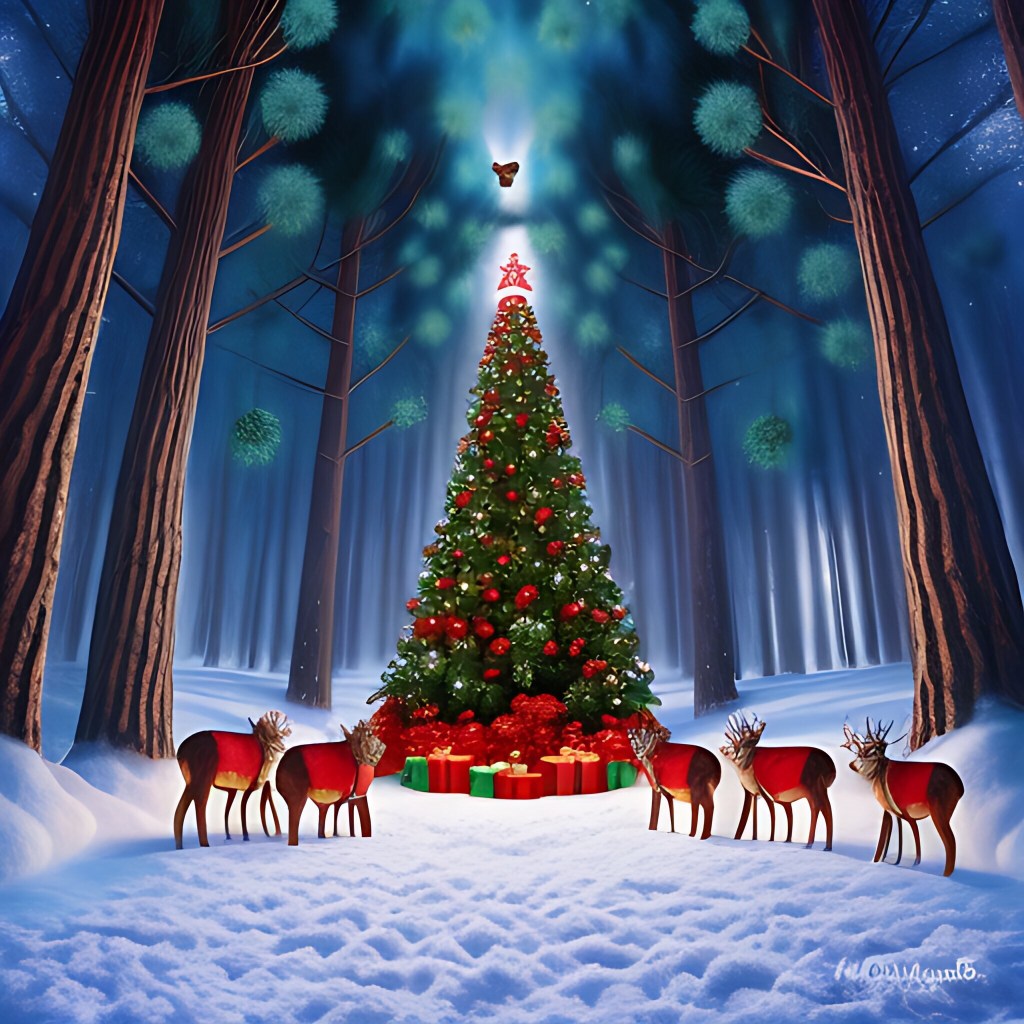 „Etwas tiefer, links, links, nein rechts!“, ruft Finn und steckt dann den Stern auf die Baumspitze. Der Baum ist fertig“, sagt Mama Wildschwein. „Jetzt muss nur noch Abend werden und dann feiern wir. Aber vorher haben die Tiere noch viel zu tun. Sie tragen Beeren und Pilze für das Festessen herbei und kleine Geschenke, die sie unter den Tannenbaum legen.“ Paul schaut dem Treiben gespannt zu und schließt dann die Augen in Gedanken. Es ist ja noch einmal das Lied, das er für alle, die er lieb hat, gedichtet hat. Hoffentlich mögen sie es. Er hat sich solche Mühe damit gegeben. „Oh, oh, oh, oh“, ruft jemand laut. Und mit einem Mal glitzert der Tannenbaum in den letzten Strahlen der Sonne. „Man macht doch nicht so einen Krach, Weihnachtsmann. Die Tiere mögen keinen Krach, das weißt du doch“, flüstert eine zarte Stimme.