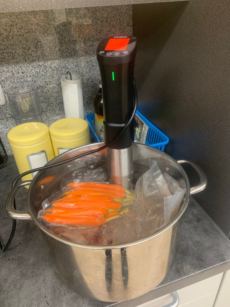 – Rinderfilet sous vide mit Rotweinsoße, glasierte Karotten & rosa Püree