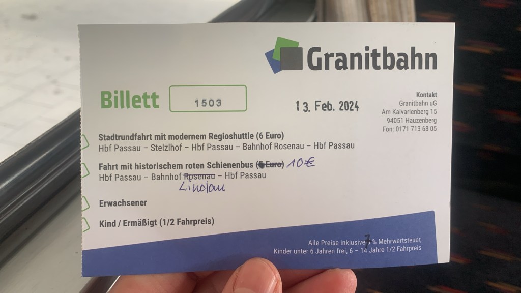Als ich kürzlich erfuhr, dass die Granitbahn wieder in Betrieb ist und das Plakat sah, auf dem stand, dass die Granitbahn zum Gaudiwurm fährt, war ich sofort begeistert. Ich machte mich auf die Suche nach Tickets und fragte beim Granitbahn Verein nach. Die Antwort war sehr freundlich: Ich sollte mein Ticket einfach im Zug kaufen.