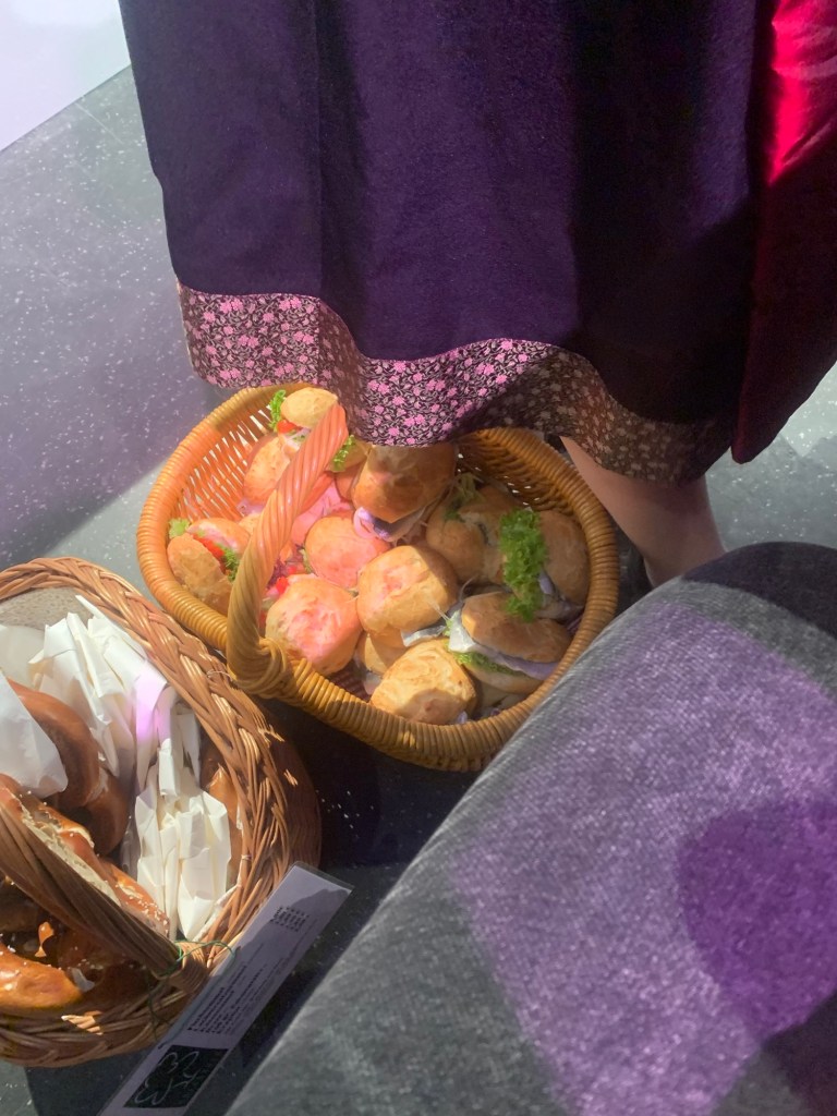 Als der Aschermittwoch anbrach, waren wir voller Aufregung und Vorfreude, denn wir erwarteten ein großartiges Erlebnis. Am Eingang des Sicherheitsbereichs angekommen, informierte ich die Begleiterin über unsere Ankunft. Sie entdeckte uns sofort und führte uns zu unserem Platz. Als wir drinnen waren, wurden wir von himmelblauen Dekorationen in bayerischen Farben überwältigt und hatten große Augen.
