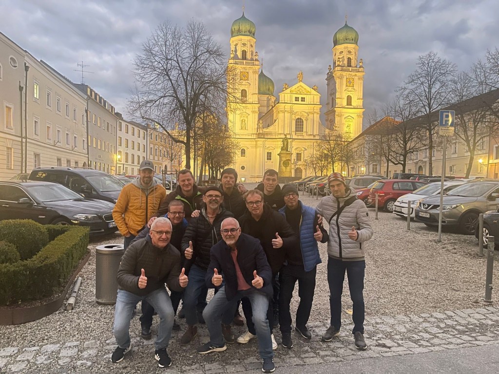 Eine angenehme Brise umspielte uns, die Sonne strahlte und einige Wolken zogen vorbei – wir hatten wirklich Glück. Am Hauptbahnhof von Passau trafen wir uns, und ich war der einzige Einheimische. Eine Gruppe von insgesamt 12 Männern schlenderte Richtung Stadtzentrum. Die Leute staunten, denn so viele Veränderungen hatten sich in Passau vollzogen, besonders gegenüber dem Hauptbahnhof. Die Gebäude erstrahlten in neuem Glanz.