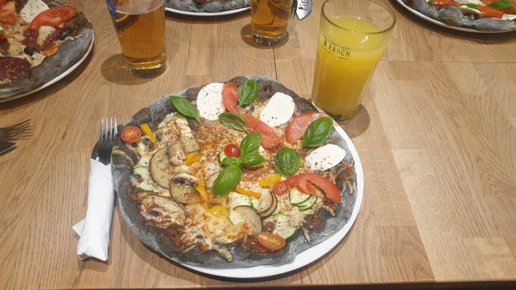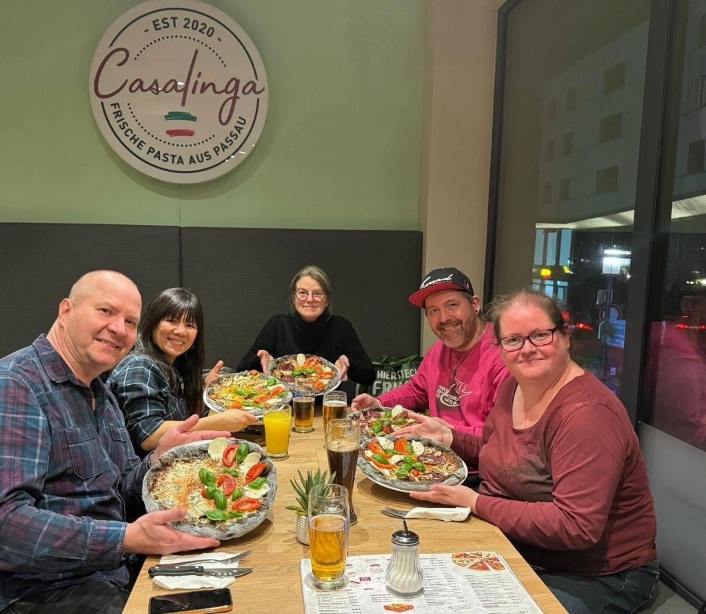 Wir hatten uns entschieden, nach dem Verein spontan ein Restaurant zu besuchen, das Pizza mit schwarzem Teig anbietet. Casalinga, ein charmantes italienisches Restaurant, war unsere Wahl. Es befindet sich in der Nähe der wunderschönen Stadt Passau, nicht weit vom Hauptbahnhof entfernt. Als wir ankamen, wurden wir herzlich von unserem Kellner begrüßt, der sogar unsere Zeichensprache gut verstand.