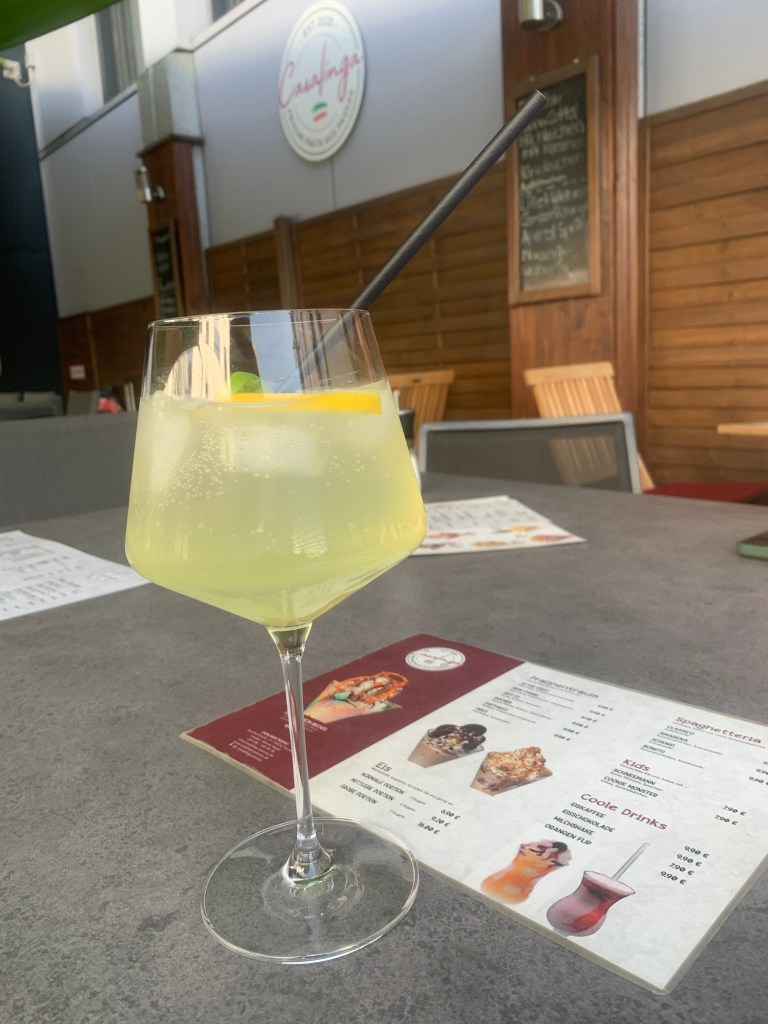 Nachdem ich das Menü durchgelesen habe, gönne ich mir einen erfrischenden Limoncello Spritz.