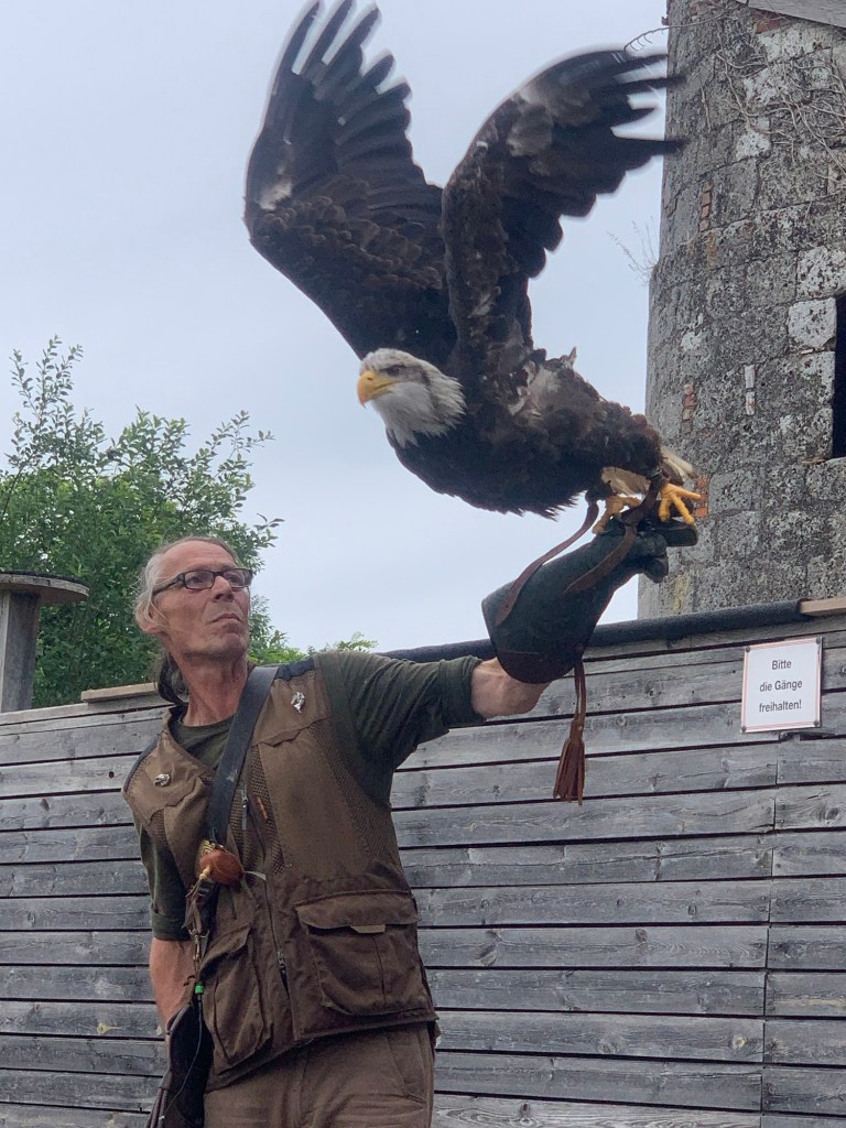 Nach unserem Besuch in der Dinowelt sind wir nur einen Katzensprung zum Falkner Obernberg gefahren. Dank des Navis fand ich einen kostenlosen Parkplatz für das Auto. Als wir drinnen waren, konnten wir verschiedene Greif- und Raubvögel fotografieren. Um 15 Uhr gab es eine Flugvorführung, bei der wir rund um den Park gingen und den Kräutergarten besichtigten. Wir stiegen auch auf den Turm und genossen den atemberaubenden Panoramablick auf den riesigen Fluss Inn. Anschließend besuchten wir ein sehr schönes Café, wo wir Cappuccino und Kuchen tranken.