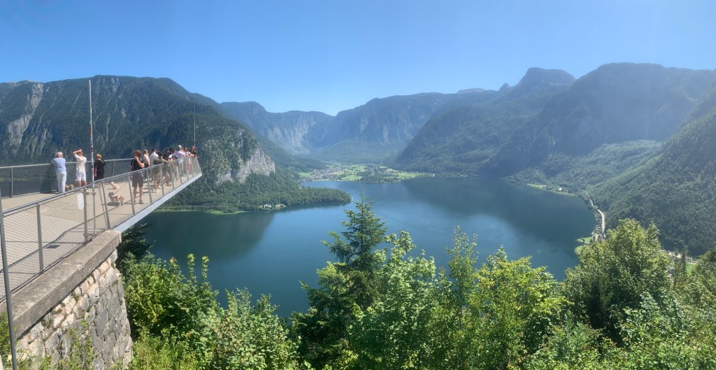 Bei unserer Ankunft an der Bergstation der Salzbergbahn machten wir uns sofort auf den Weg zum Rudolfsturm, gleich zum Skywalk. Dort wurden wir mit einem atemberaubenden 360-Grad-Panorama belohnt. Worte können kaum beschreiben, wie schön die felsige Landschaft in Kombination mit dem Hallstättersee war. Wir konnten die Personenschiffe beobachten, die um den See fuhren. Die Sonne strahlte intensiv auf meine Haut, während wir weiter hinauf wanderten. Entlang des Weges zwischen der Bergstation und dem Salzbergwerk fanden wir zahlreiche Erklärungstafeln, die interessante Einblicke in das Leben vor 7000 Jahren gaben.