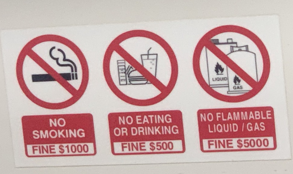 Rauchen ist im Zug nicht gestattet und wird mit einer Geldstrafe von 1.000 SGD geahndet. Auch das Essen und Trinken in Zügen oder Bussen ist untersagt, wobei ein Verstoß mit einer Strafe von 500 SGD geahndet wird. Das Mitbringen von Propangasflaschen in den Zug kann mit einer drastischen Geldstrafe von 5.000 SGD bestraft werden.