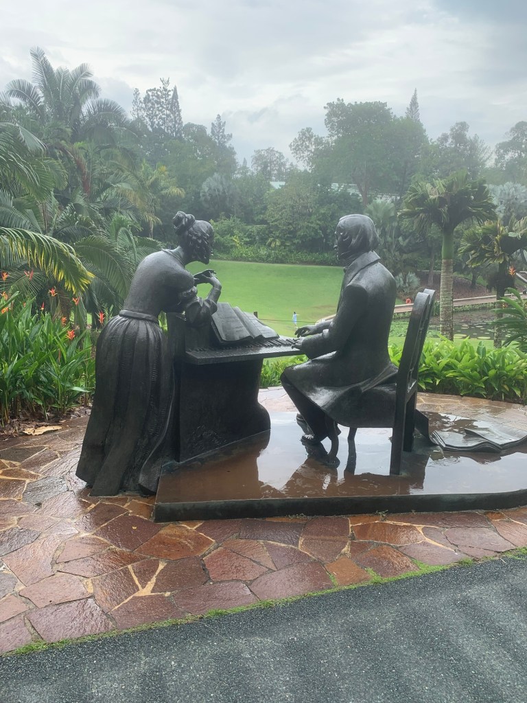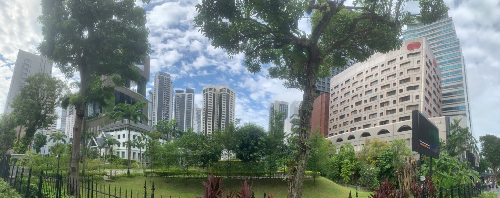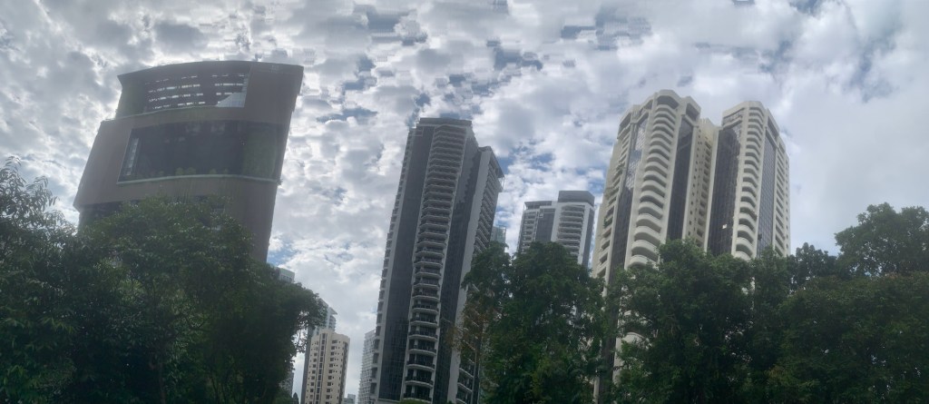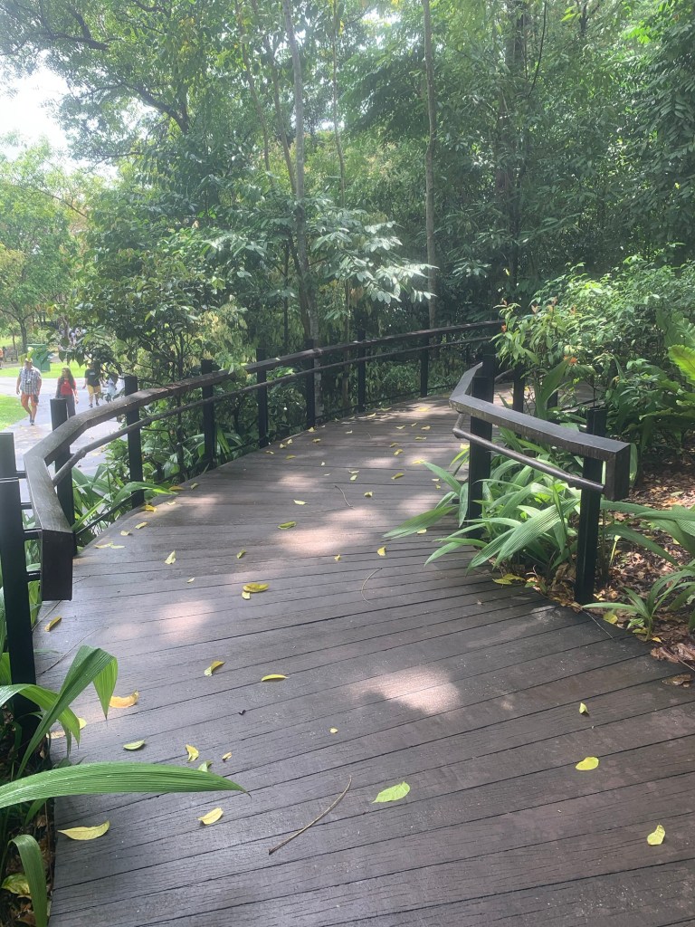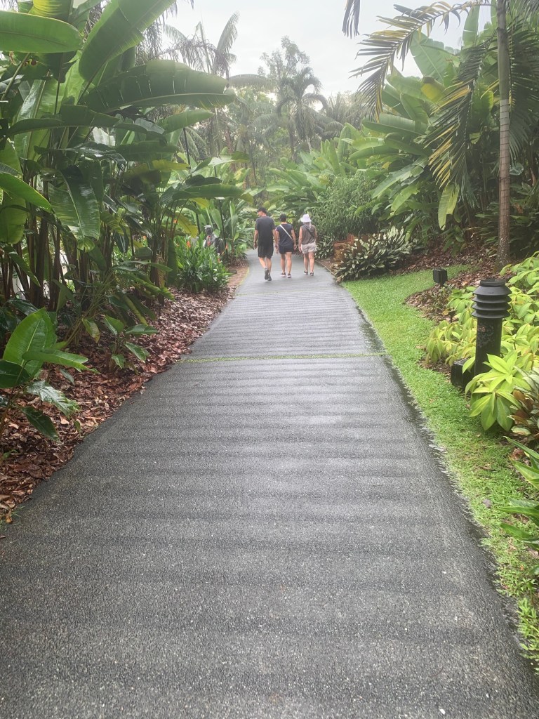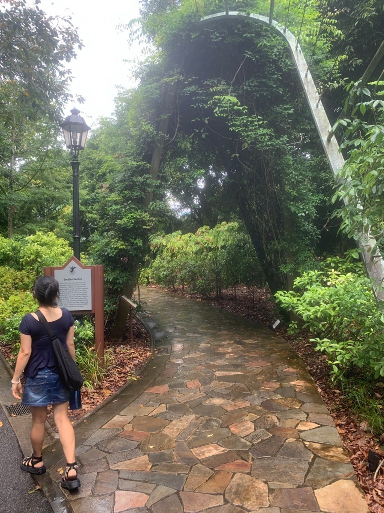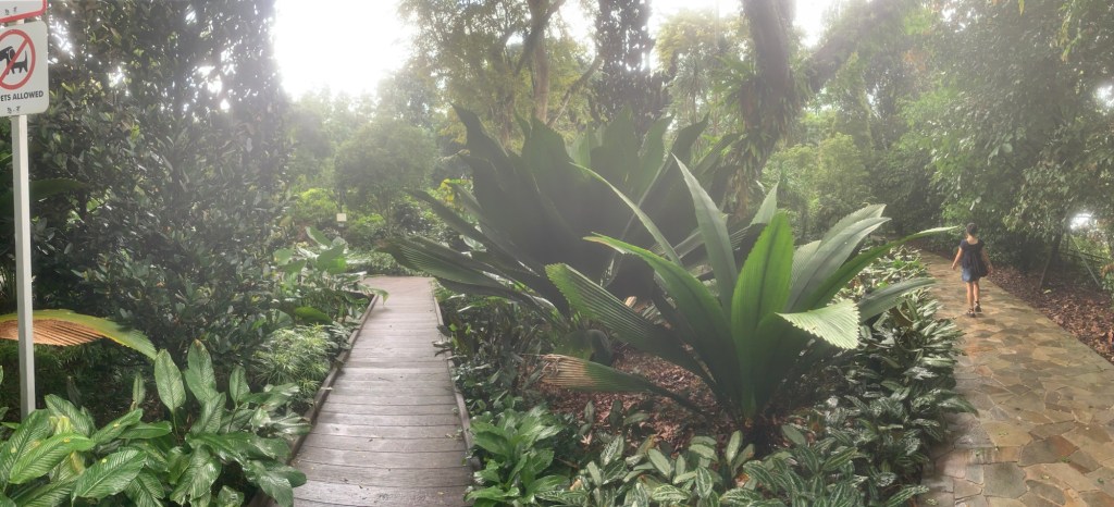 Heute, am 15. September, sind wir bereits seit sechs Tagen in Singapur. Nach dem Frühstück machten wir uns direkt auf den Weg zu den Botanischen Gärten, um dem Alltag zu entfliehen. Dunkle Wolken zogen auf und ich befürchtete, dass ein starker Regen bevorstand. Dennoch setzten wir unseren Plan fort und besuchten die Gärten. Nachdem wir an der Bahnstation ausgestiegen waren, stellte ich fest, dass der Regen nur von kurzer Dauer war. Die Luftfeuchtigkeit betrug hier über 90 % und die Temperatur lag bei angenehmen 30 Grad. Sobald wir die Botanischen Gärten betraten, hatten wir das Gefühl, warmen Sauerstoff einzuatmen, der die Atmosphäre dort besonders angenehm machte.