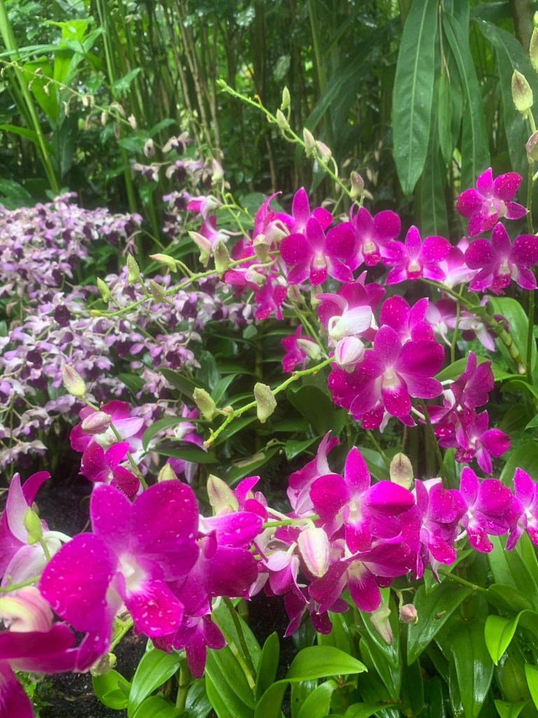 Dieser Weg führte zum Orchideengarten, der mit seiner beeindruckenden Farbenvielfalt an Orchideen verzaubert. Es war einfach wunderschön, und ich konnte nicht widerstehen, Fotos zu machen.
