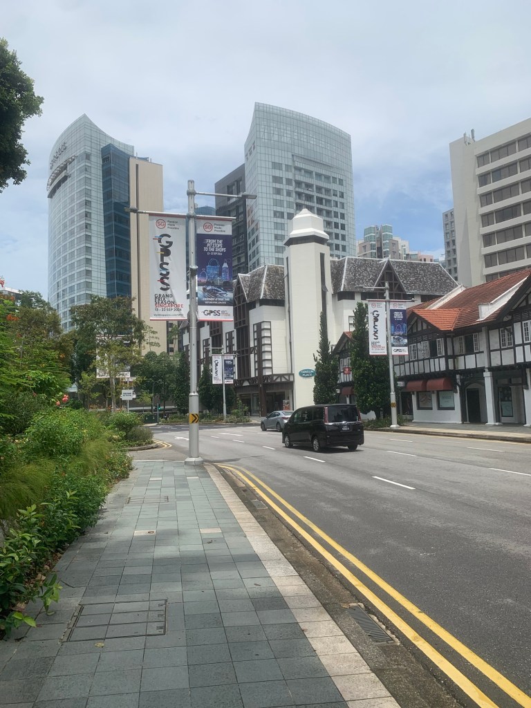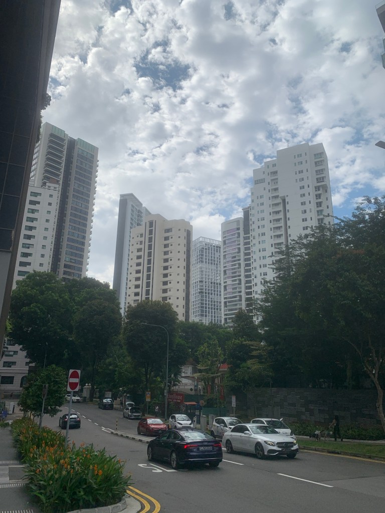 Während wir über die Brücke gingen, hielt ich kurz an, um ein Video von der siebenspurigen Straße im Linksverkehr zu drehen. So präsentiert sich das Straßenbild in Singapur.