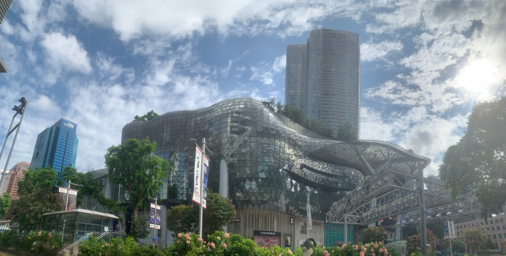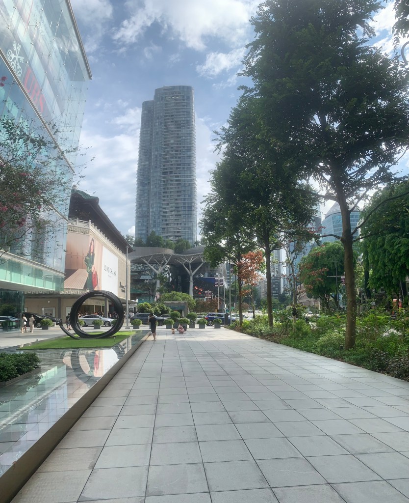 Nach unserem Besuch im Botanischen Garten setzten wir unseren Weg zur Orchard Road fort, wo sich zahlreiche beeindruckende Wolkenkratzer aneinanderreihen. Die Straße ist äußerst gepflegt, und überall sind Werbetafeln für die bevorstehenden Formel-1-Rennen zu sehen, was mich sehr fasziniert hat. Währenddessen genossen meine Frau und ich erfrischende Getränke – sie einen gekühlten Fruchtsaft, ich einen leckeren Kakao. Diese Momente der Entspannung waren einfach herrlich.