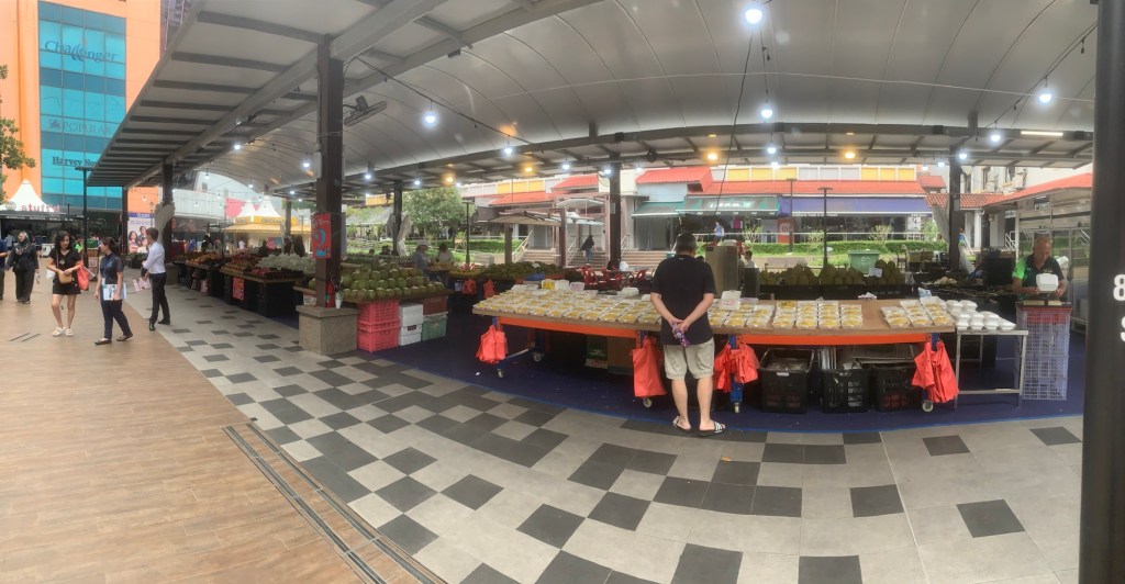 Im unteren Bereich der Hougang Mall wurde man von einem starken Durian-Duft begrüßt, der sich mit dem markanten Aroma von Jackfruit vermischte. Es war, als ob die beiden Früchte ein Duett der intensiven Gerüche aufführten!