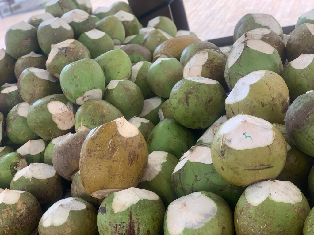 Wir hatten so einen Durst, dass wir uns eine Kokosnuss schnappten und gemeinsam daran schlürften. Das ist wie ein flüssiges Stück Urlaub – perfekt für das tropische Schwitzen in Singapur!