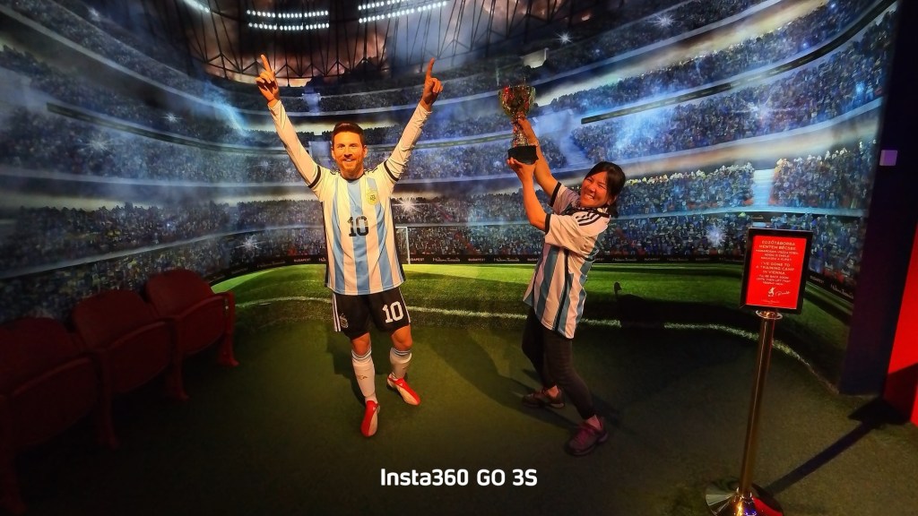 Nachdem wir im Apartment angekommen waren, gönnten wir uns eine einstündige Pause. Anschließend fuhren wir mit der Metro bis zur Station Deák Ferenc tér, um Madame Tussaud’s zu besuchen. Nachdem wir die online über GetYourGuide gebuchten Tickets entwertet hatten, betraten wir das Wachsfigurenkabinett. Dort erstrahlten zahlreiche bekannte Gesichter von Schauspielern, Sportlern, Musikern und historischen Persönlichkeiten, wie beispielsweise Sissi, ungarische Könige, der berühmte Fußballer Puskás und viele mehr. Wir hatten sogar die Möglichkeit, uns als Könige oder als der bekannte argentinische Fußballspieler Messi zu verkleiden. Meine Frau durfte sogar ein argentinisches Trikot anziehen und posierte triumphierend.