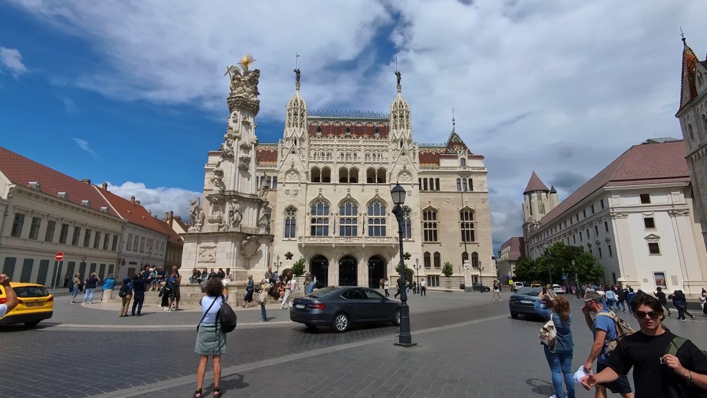 - 2. Stopp: Matthiaskirche: Beim zweiten Stopp überraschte uns unser Fahrer mit köstlichem Budapester Strudel, der im Preis inbegriffen war. Die Matthiaskirche beeindruckte mit ihrem atemberaubenden Baustil. Wir hatten eine halbe Stunde Zeit, die Umgebung zu erkunden und unzählige Fotos zu machen, zusammen mit vielen anderen Touristen.