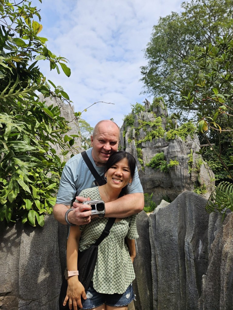 Nach diesem langen Marsch waren wir hungrig wie die Pandabären. Wir fuhren zurück nach Ang Mo Kio und genossen dort ein gemeinsames japanisches Abendessen. Durch die vielen Stunden in der Sonne wird meine Haut mittlerweile immer dunkler – man sieht, dass wir viel im Freien unterwegs sind!