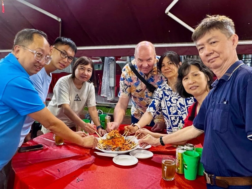 Gegen 18 Uhr machten wir uns auf den Weg nach Ang Mo Kio, um uns mit gehörlosen Freunden zum Abendessen zu treffen. Bevor es ans Essen ging, hielten wir eine besondere Tradition fest: Wir machten ein gemeinsames Foto, bevor die Zutaten (typisch für das chinesische Neujahrsfest) unter lautem Jubel in die Höhe geworfen wurden.