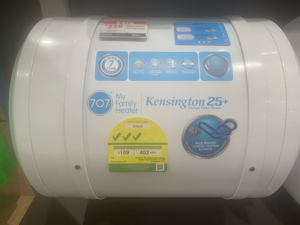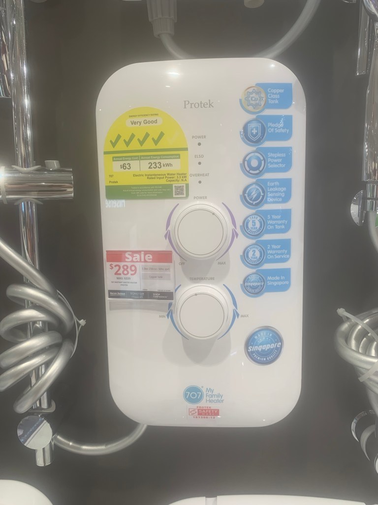 Die Durchlauferhitzer (KDK, Protek, Ariston) mit den gelben Energie-Labels