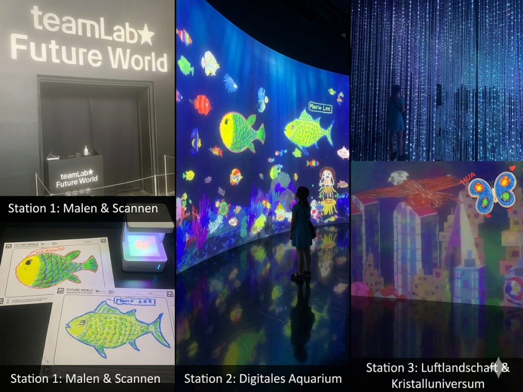 Das krönende Highlight des Nachmittags wartete im ArtScience Museum auf uns. Die interaktive Ausstellung „teamLab Future World“ verbindet menschliche Kreativität mit modernster Projektionstechnik. Unser Erlebnis erstreckte sich über drei faszinierende Stationen: