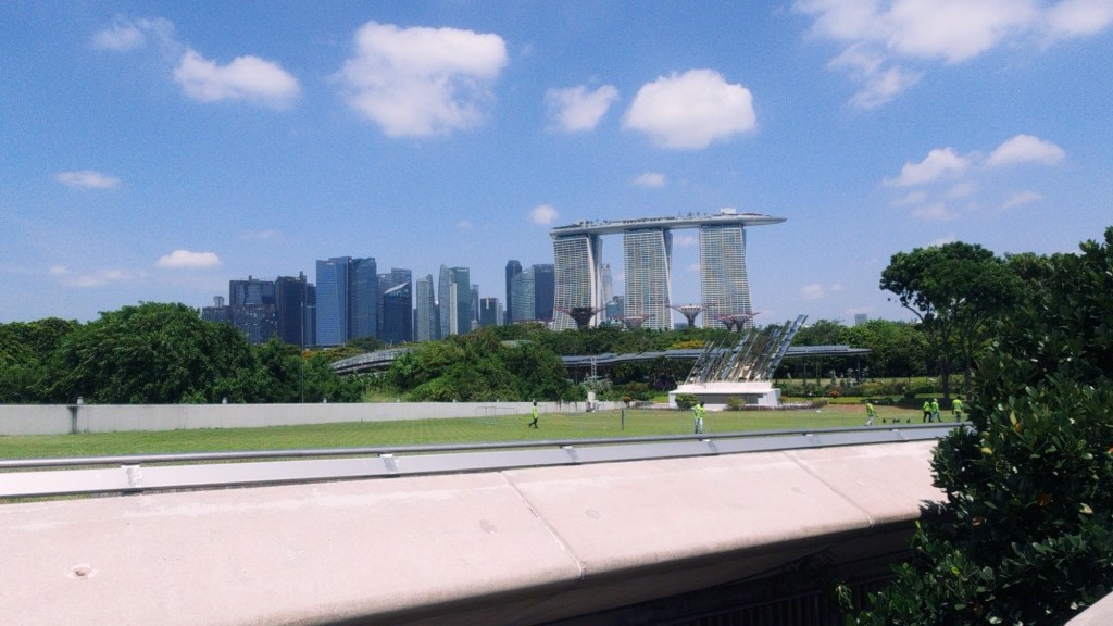 Um diese Fülle an Informationen sacken zu lassen, spazierten wir auf das „Green Roof“ der Marina Barrage. Das Dach ist komplett mit Gras bewachsen, kühlt das Gebäude auf natürliche Weise und bietet ein unvergleichliches Panorama. Der Blick auf das berühmte Hotel Marina Bay Sands, das Riesenrad und die Skyline der Hochhäuser ist einfach herrlich.