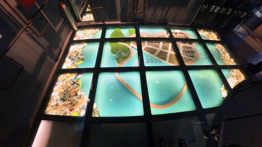 Gleich neben den Pumpenanlagen besuchten wir die „Sustainable Singapore Gallery“. Diese Ausstellung ist weit mehr als ein Museum; sie ist der architektonische Bauplan für das Überleben einer modernen Metropole und zeigt eindrucksvoll das Konzept der Kreislaufwirtschaft („Circular Economy“).