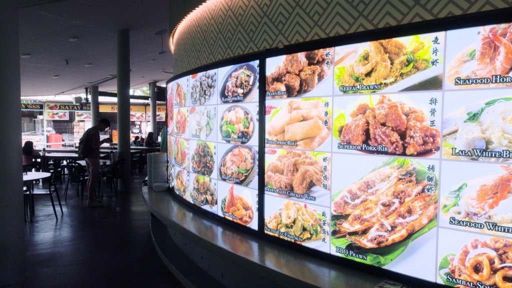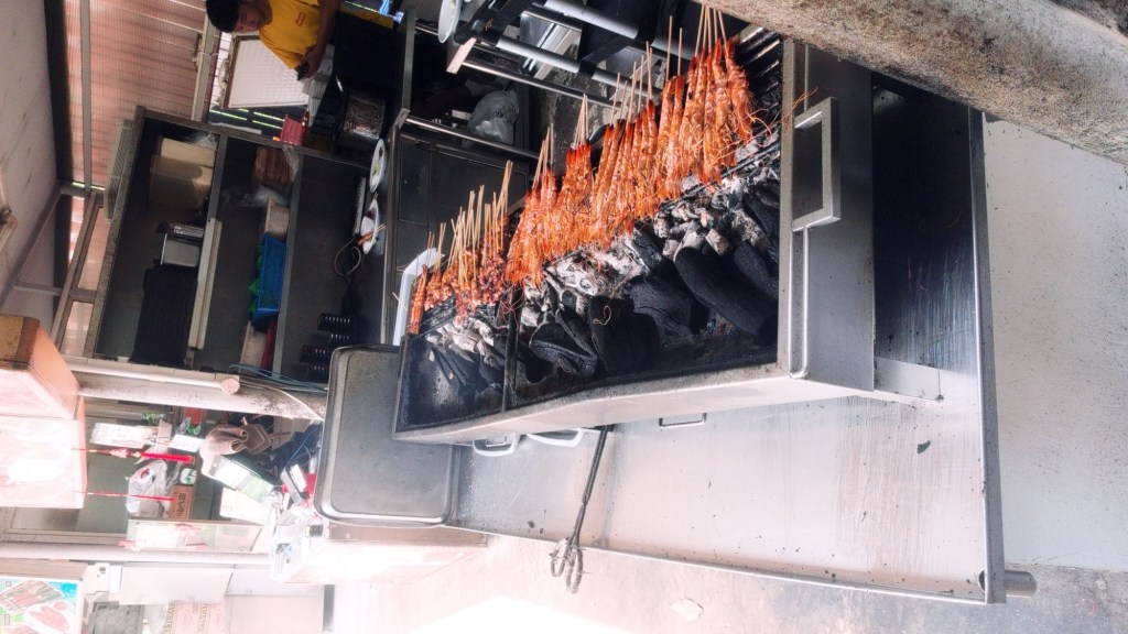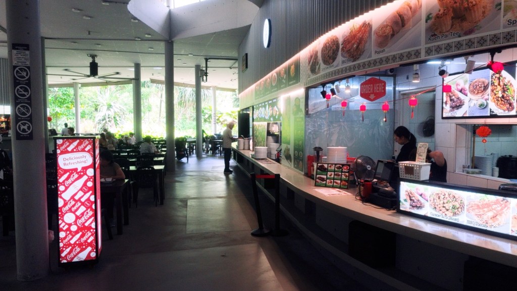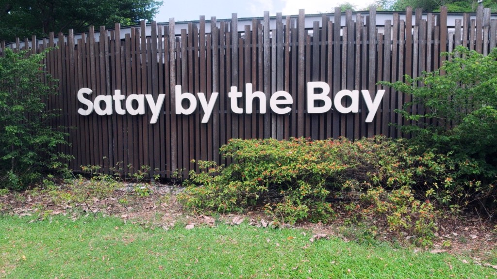 Nach diesem langen Marsch in der Hitze überquerten wir die 350 Meter lange Brücke des Damms und machten uns auf den Weg zum Food-Court „Satay by the Bay“.