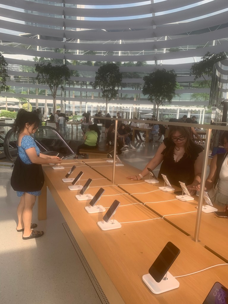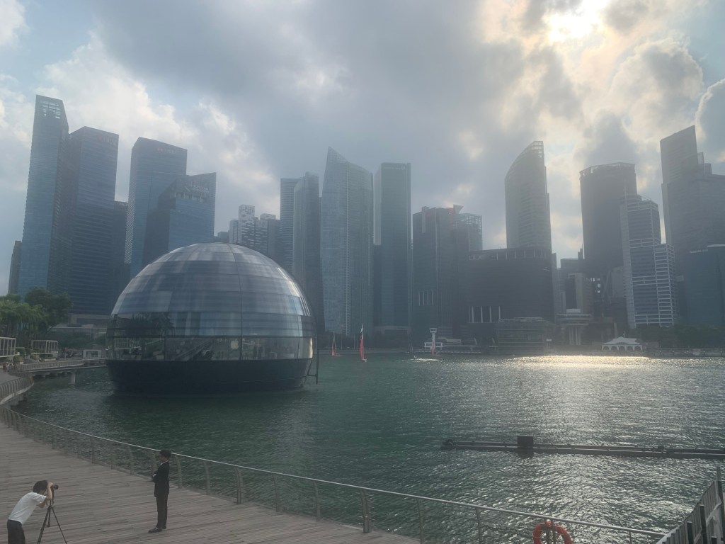 Zum Ausklang dieses intensiven Tages besuchten wir die spektakuläre, gläserne Kuppel des Apple Stores, die wie eine Halbkugel direkt auf dem Wasser der Marina Bay schwimmt.